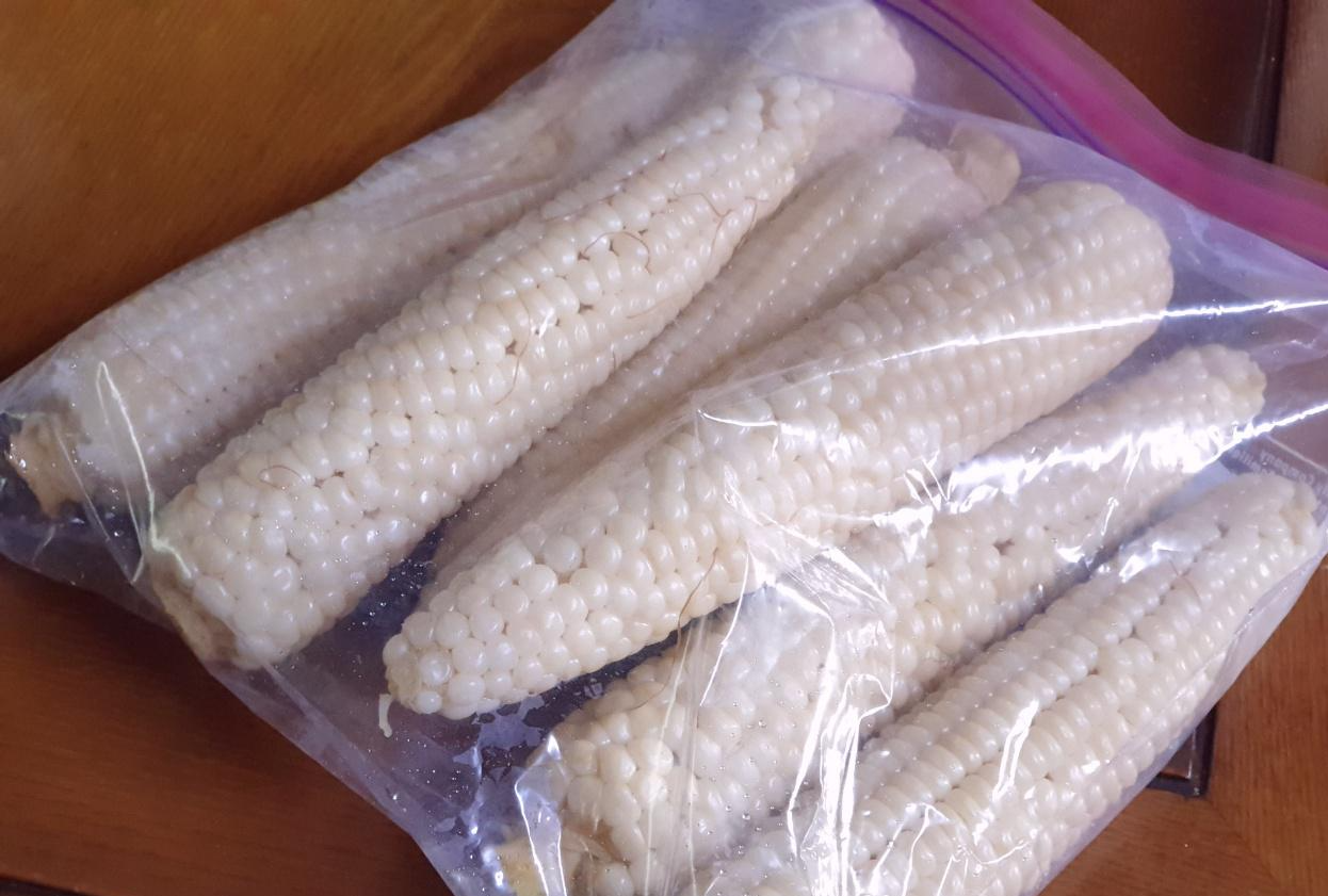 집에 오자마자 옥수수를 봉지에서 빼서